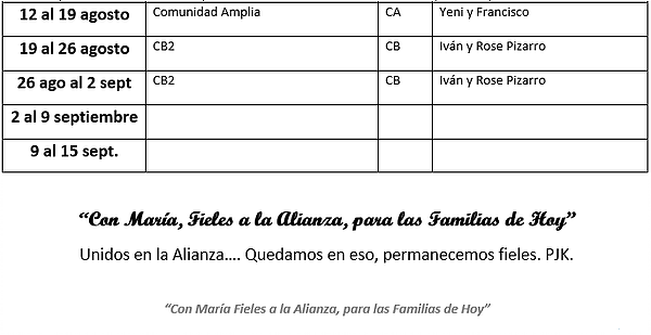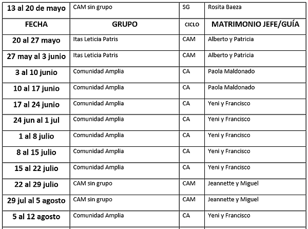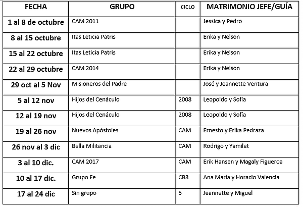 Para participar de la visita de nuestro Padre Fundador a cada hogar, hemos establecido que cada grupo podrá contar con su presencia por el periodo de una semana y máximo dos, en caso que, el grupo así lo requiera por la cantidad de matrimonios.